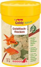 Sera Goldy Nature is het hoofdvoeder voor kleinere goudvissen en hun kweekvormen zoals bijv. de Shubunkin, sluierstaart of sarasa en andere koudwatervissen, dat geen kleur- en conserveermiddelen bevat.