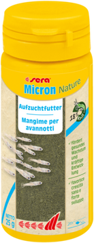 Sera Micron Nature is het kweekvoeder zonder kleur- en conserveermiddelen voor de gezonde voeding van vis – en amfibielarven alsook artemia-nauplius in zoet- en zeewater.