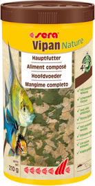 Sera Vipan Nature is het hoofdvoeder van drijvende vlokken zonder kleur- en conserveermiddelen voor alle siervissen, die aan het wateroppervlak eten.