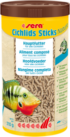 Sera Cichlids Sticks Nature is het hoofdvoeder zonder kleur- en conserveermiddelen van behoedzaam geproduceerde sticks voor grotere, alles etende cichliden – deze omvatten veel Zuid-Amerikaanse soorten – en andere grote vissen.