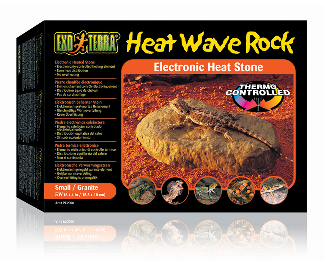 De Heat Wave Rock simuleert een steen opgewarmd door de zon (in de natuur, zelfs na zonsondergang, behouden stenen of rotspartijen hun warmte voor een aantal uur). Tal van reptielen, ook nachtactieve dieren, benutten deze vorm van warmte voor temperatuurregeling, belangrijk bij het metabolisme en de spijsvertering. De Heat Wave Rock schakelt automatisch uit indien de steen een bepaalde temperatuur bereikt heeft om zo oververhitting of zelfs verbranding te voorkomen. Het elektronisch geregelde warmte-element is volledig omsloten en is verspreid over de gehele steen om zo hete plekken te voorkomen. Het speciale warmtegeleidende materiaal is waterdicht, niet giftig, gemakkelijk te reinigen en verzekert een gelijke verdeling van de warmte. Natuurgetrouwe Heat Wave Rocks zijn beschikbaar in drie maten en zijn gemakkelijk te integreren in elke terrarium inrichting; vochtig of droog.