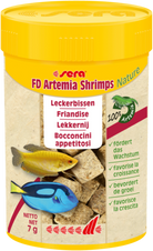 Sera FD Artemia Shrimps Nature is de natuurlijke, gezonde lekkernij van 100% kleine artemia voor alle vissen en ongewervelde dieren in zoet- en zeewater.