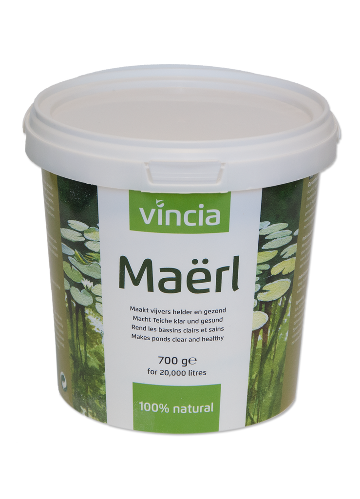 Met de Vincia 100% natural vijverproducten richt Velda zich op het op natuurlijke wijze helder, gezond én mooi houden van de vijver, vissen en planten. Ze zijn 100% milieuvriendelijk en biologisch afbreekbaar. Vincia is er voor de vijverliefhebber die liever geen onnatuurlijke middelen gebruikt, maar wel genieten wil van het leven rondom zijn heldere waterpartij.Maërl is een natuurproduct met een zeer laag fosfaatgehalte. Het is bij uitstek geschikt voor nieuw aan te leggen vijvers en om troebel water helder en gezond te maken. Maërl verhoogt de gezamenlijke waterhardheid en activeert de ontwikkeling van de micro-organismen. Gebruik het regelmatig om de vijver helder te houden.Regenbuien en organisch restmateriaal in de vijver kunnen de waterharheid flink verlagen. De planten in de vijver groeien slecht door gebrek aan mineralen. Verhoog de hardheid met Maërl om problemen te voorkomen.
