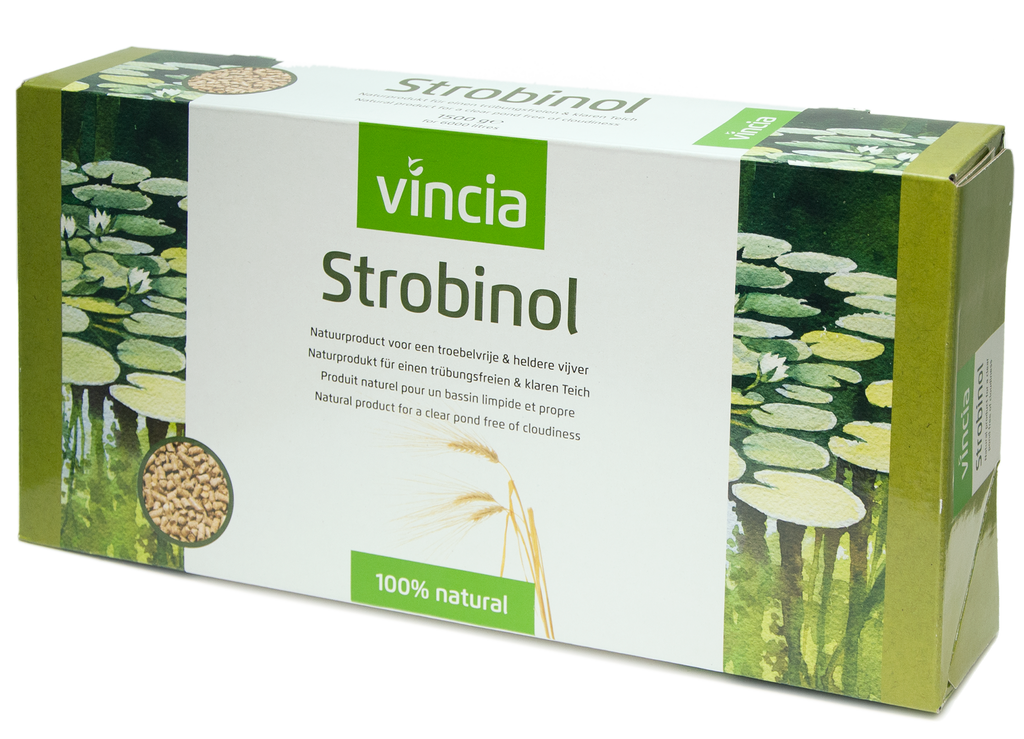 Strobinol is een natuurproduct op basis van gerstestro met een preventieve werking; het vijverwater blijft troebelvrij en helder. De 100% natuurlijke werking van gerstestro berust op de ontwikkeling van pantoffeldiertjes en ander plankton, de microscopisch kleine diertjes houden de vijver langere tijd helder. Tijdens het ontbindingsproces van gerstestro komen er nuttige stoffen voor de vijver vrij. Strobinol is geconcentreerd gerstestro, geperst in gebruiksvriendelijke ‘pellets’. Het bevat 100% natuurlijke organische bestanddelen en is biologisch afbreekbaar. Deze verpakking is voldoende voor vijvers met een inhoud tot 6000 liter.